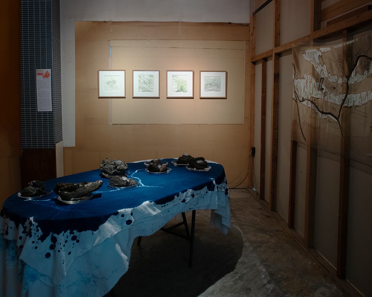 この湧水が、どこから来て、どんな道々を通り、どこに流れて行っているのか。そして、私たちはその水と、どのように出会っているのか。湧水で作った氷が暗示的に富士山頂から流れる水を表す。